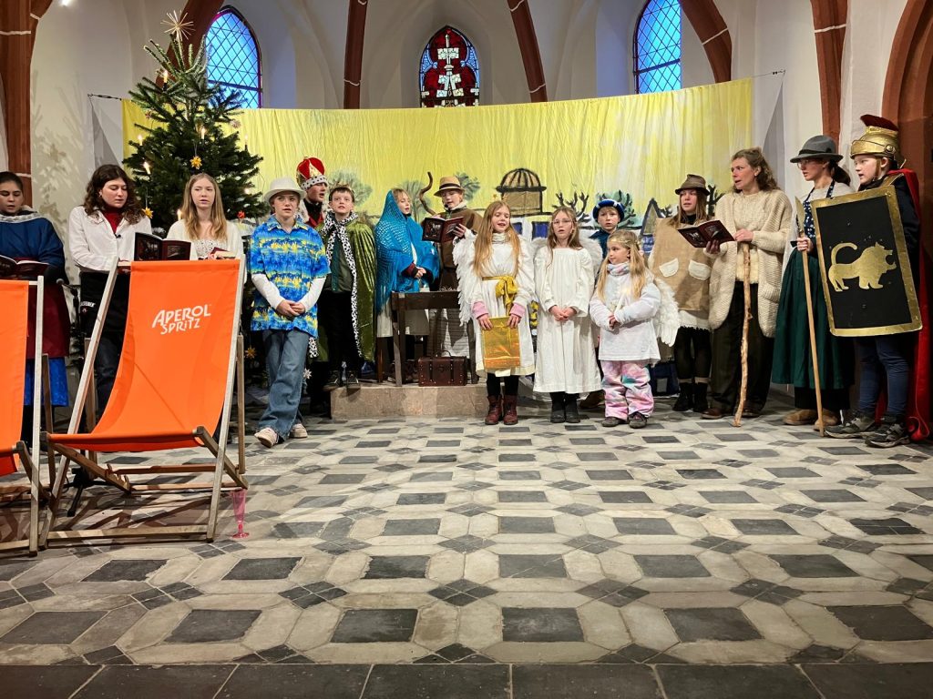 Ein besonderer Dank gilt allen Mitwirkenden, die dieses Krippenspiel ermöglicht haben. In diesem Jahr übernahmen die Erwachsenen aus unserer Gemeinde die Schauspielrollen, während unsere kleinen Darsteller das Geschehen mit Gesang, Tänzen und Instrumentalstücken musikalisch untermalten. Gemeinsam sorgten sie für eine unvergessliche Aufführung. Romy Jöhrer