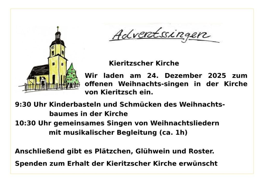 Besinnliches Weihnachtssingen in der Kirche Kieritzsch