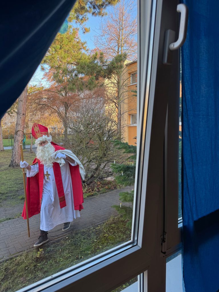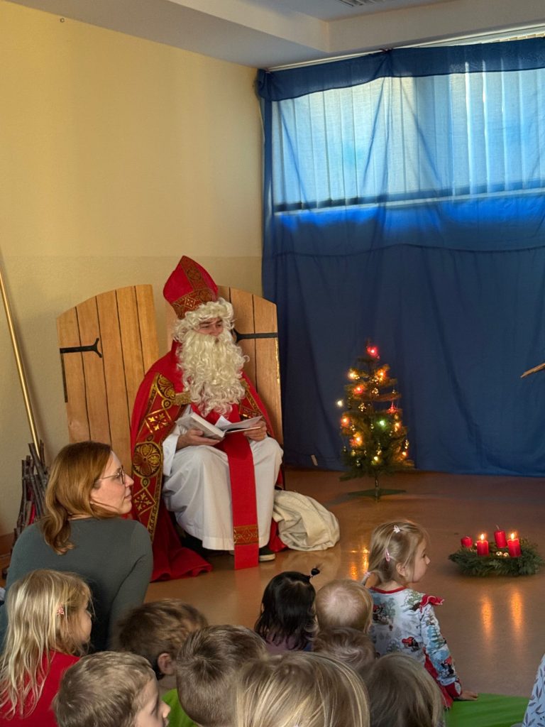 Der Nikolaus setzte seine Reise an den folgenden beiden Tagen in Borna fort. Am Sonntag, dem 7. Dezember, besuchte er wieder den traditionellen Familiengottesdienst in der katholischen Kirche St. Joseph. Am Montag, dem 8. Dezember, überraschte er die evangelische Kita „Marienkäfer“. Große Freude gab es unter den 70 Kindern, als der Bischof – nach dem gemeinsamen Singen und Geschichte erzählen – unter ihnen Schokonikoläuse verteilte.